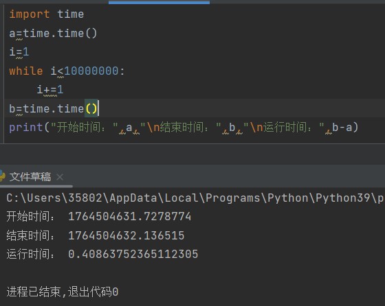 time()方法不仅可以检测程序代码在何时被执行,也可以测量程序的运行速度