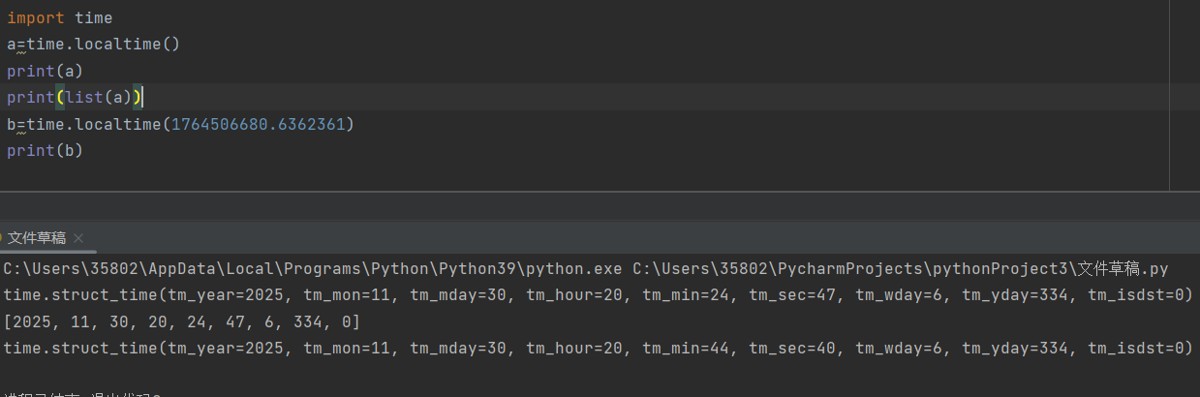 返回值:struct_time数据对象。struct_time数据对象是python内置数据类型,其形式类似于元组