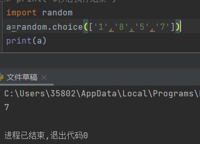 choice(参数)用于从参数中随机选择一个元素,参数通常是序列类型(可以通过索引的方式获取元素)数据,例如列表、字符串