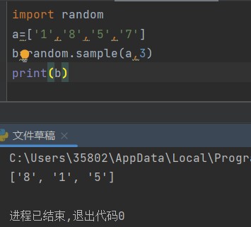 sample(参数1,参数2)用于从参数1中随机选取参数2个元素,其中参数1为序列数据类型,参数2为整数