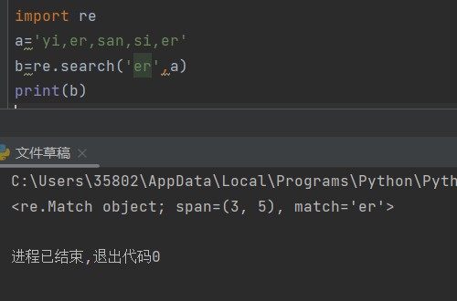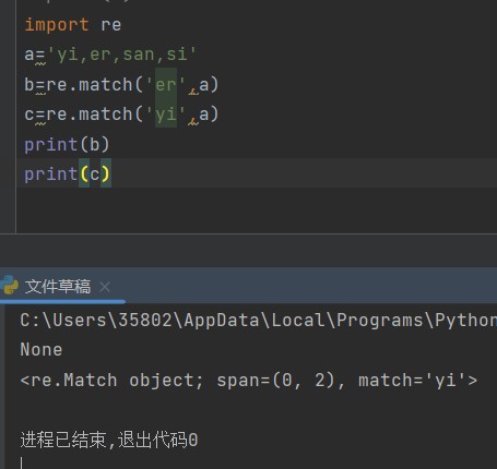 功能:表示从参数2(字符串类型数据)中查找满足参数1(正则表达式)的内容,如果参数2起始位置匹配不成功的话,输出none,如果起始位置匹配成功,就返回匹配的内容