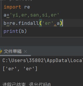 注:findall()函数不会返回匹配信息的位置,而是以列表的形式返回匹配成功的全部内容