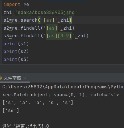 [xyz]:字符集合,即匹配所包含的任意一个字符,例如[abc]可以匹配blue里的b,注:当在匹配sdkabcjshd时,会输出a,b,c而不是abc