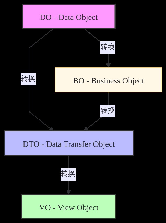 // 分层转换 dao层 → service层 → controller层 → 前端 do → dto → vo → json