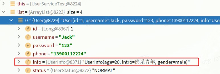 接下来,将user类的info字段修改为userinfo类型,并声明类型处理器