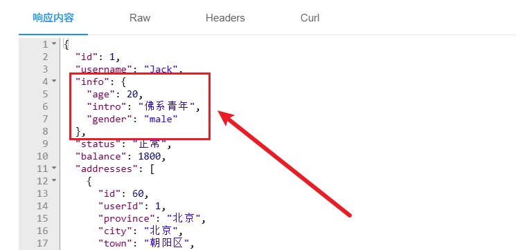 同时,为了让页面返回的结果也以对象格式返回,我们要修改uservo中的info字段: