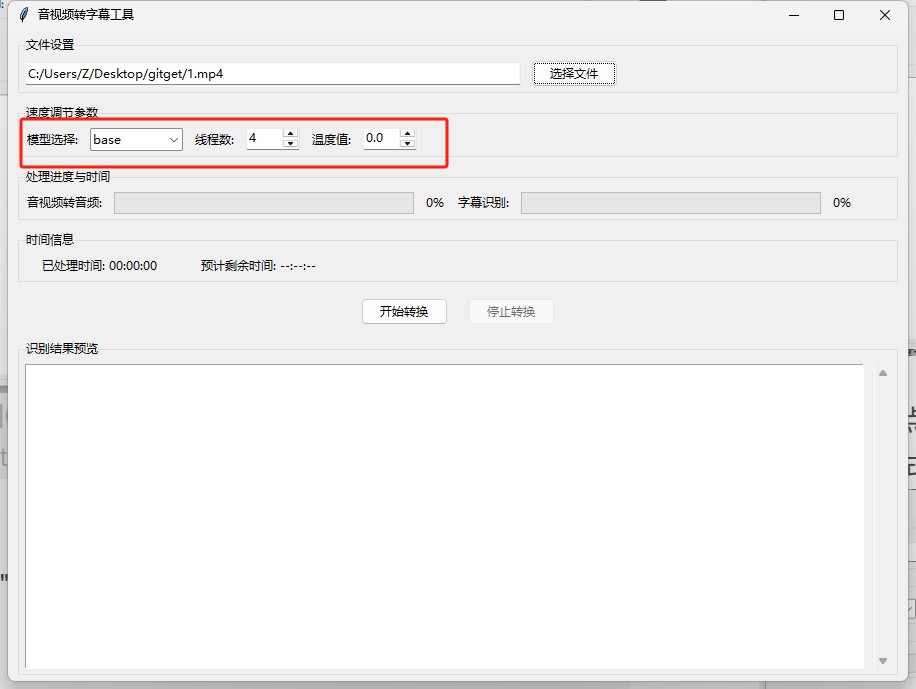 - 温度值:默认0.0(适合字幕生成)