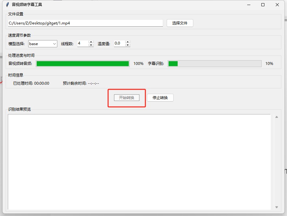 - 实时进度反馈:双进度条分别显示音频提取和字幕识别进度