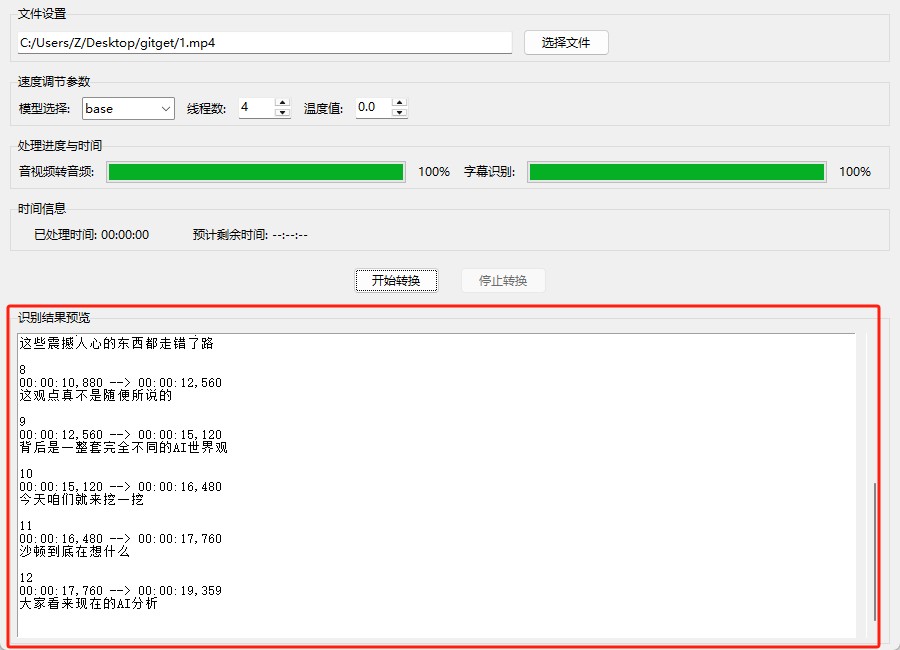- 自动保存与原文件同名的srt文件(如"视频.mp4"生成"视频.srt")