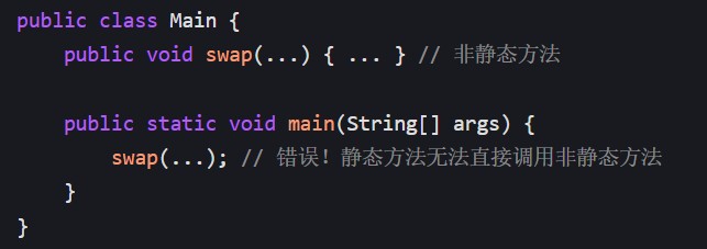 main和工具方法(如swap)的static,确保程序可运行。 - 仅在需要对象状态时使用非静态成员(如实例变量、方法)。
