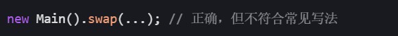 main改为非静态(但 jvm 无法直接启动,需通过其他类调用)。 - 创建类的实例来调用方法(违背 java 程序的常规写法)。