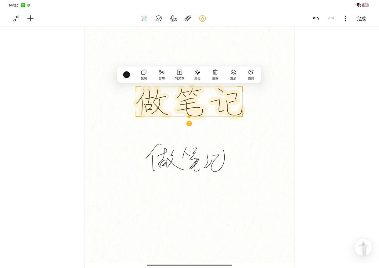 课堂速记方面,它有实时字迹美化,写完停顿一秒就会自动优化,识别率也很高。这个功能最有价值的点在可读性。课堂上写得快,课后翻开依然看得懂,复盘成本会明显降低。对理工科尤其友好,公式、步骤、关键词密度很高,笔记只要回看困难,就会逼着你重新翻课件,复习效率会被拖下去。字迹更清楚,你会更愿意把笔记当成复盘的第一入口。