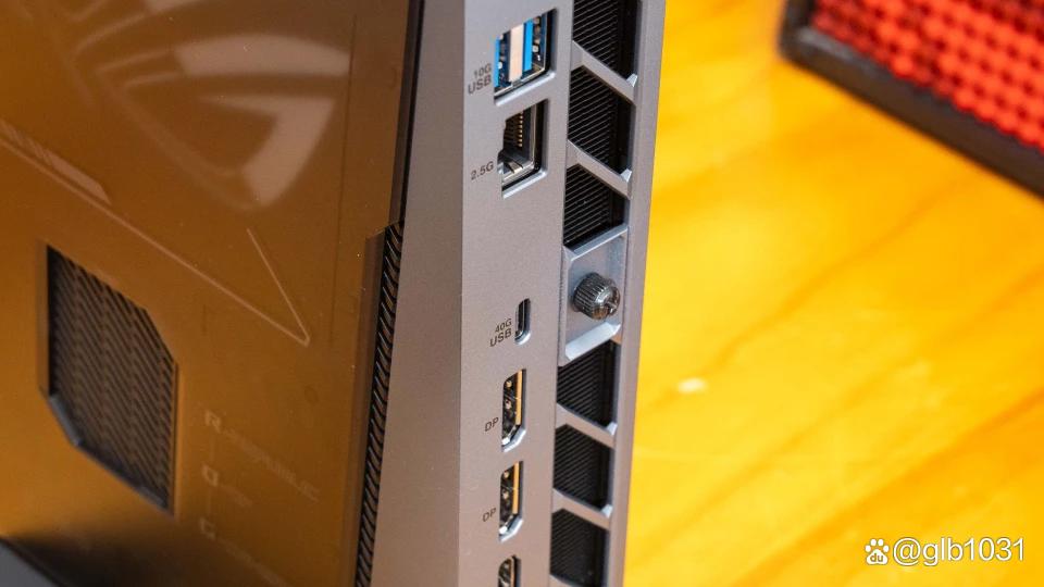 另外作为性能怪兽级别的桌面迷你主机,它也充分考虑了后期升级问题在后置io区域这里设计了一颗手拧螺丝,玩家可以轻松拆卸后盖来升级内存或者ssd。
