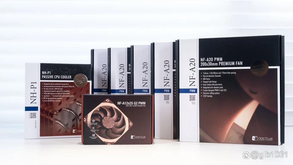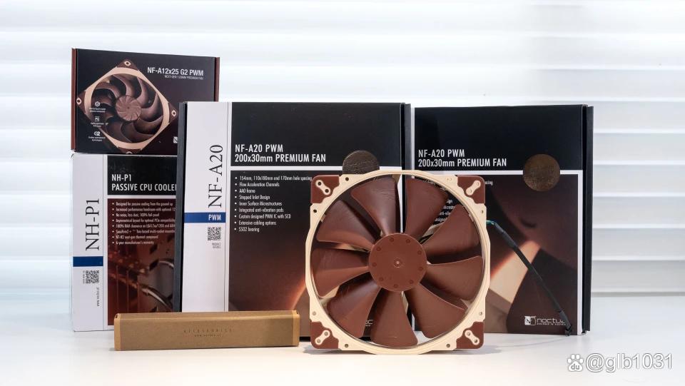 风扇方面因为要选20cm的风扇,所以首先想到了猫头鹰之前推出的nf-a20了。这也是少有的几个直接有20cm的风扇选择了,另外这次还尝试了nf-a20x25 g2 pwm这款12cm旗舰一起。合照下是不是很有压迫感,这次装机也让我终于有机会装这款入手很久的nh-p1被动式散热了。