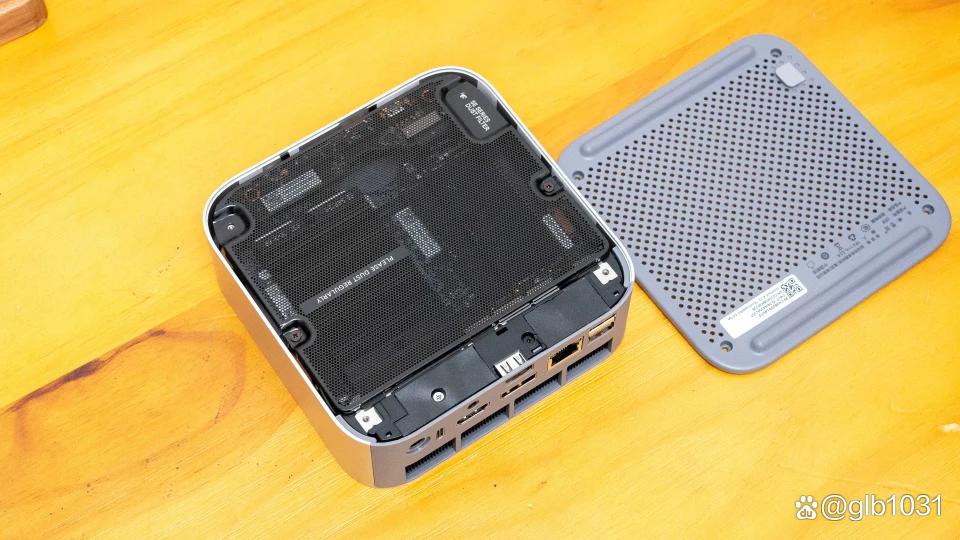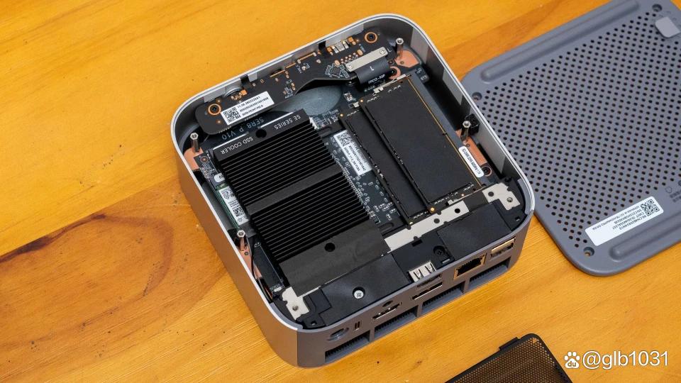打开后就可以看到内部的双ddr5 笔记本内存和m.2 硬盘的安装位置。当然最「卷」的还是零刻,为玩家提供了硕大的m.2 散热盔甲来帮助散热。这点上真的「卷」。