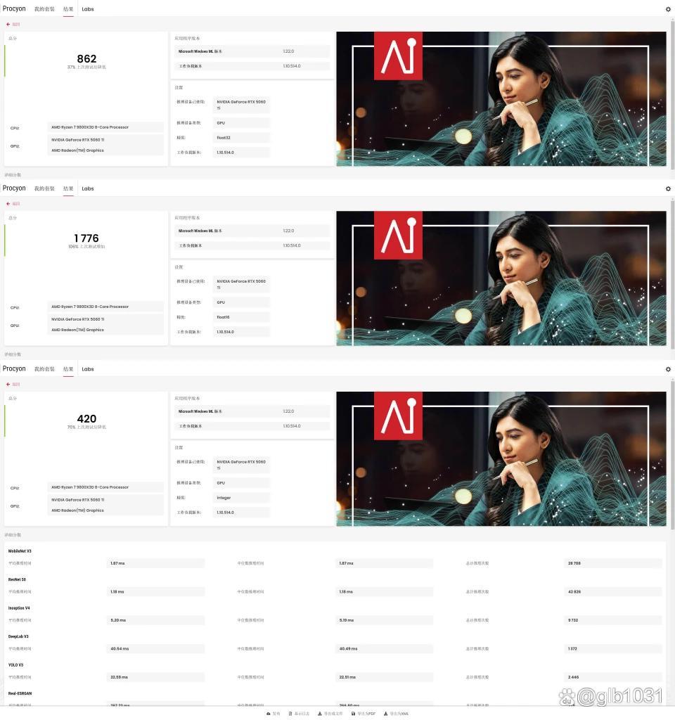 procyon的nvidia tensorrt ai性能测试如图。