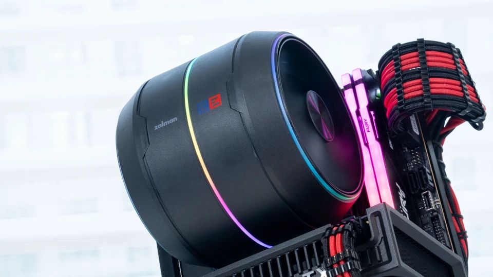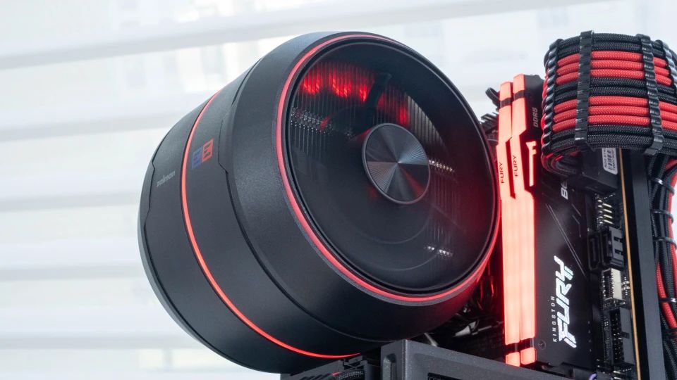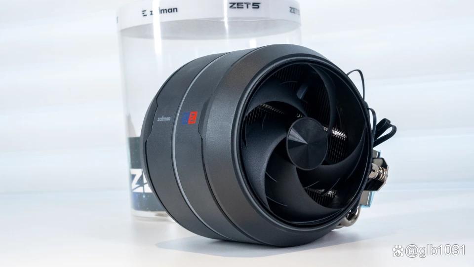 这次客制化的itx主机除了显卡,可能最吸引玩家的就是这个打破玩家固有的方形散热观点,突破性地采用了类似飞机航空发动机的设计,圆形的zalman思民zet5 散热器。