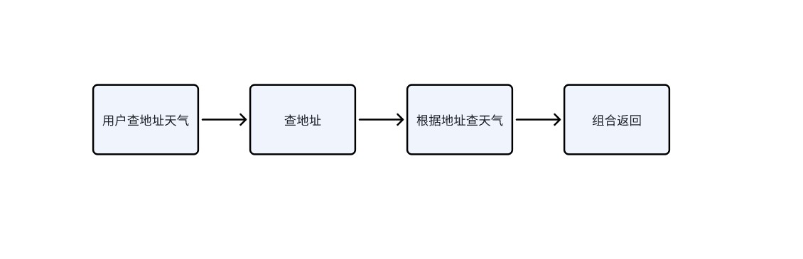 比如「先查用户地址,再根据地址查天气」,第二个任务依赖第一个的结果: