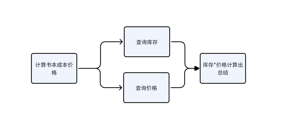 如果两个任务毫无关系,可以并行执行,最后合并结果。比如「同时查商品价格和库存,计算总价」: