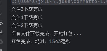 }3.两个任务是并行执行的,所以通知先完成(只等了 500ms),外卖查询后完成(等了 1000ms)。