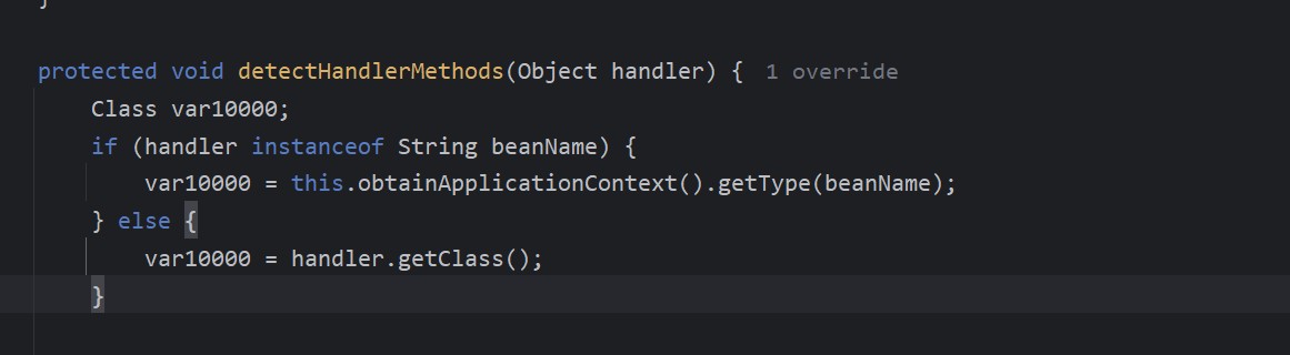 未曾注意到这一细节,我们发现了问题,注册控制器到主应用上下文的bean用的控制器名称,而将控制器方法的注册传入的是控制器对象而不是简单的控制器名称,所以获取到的方法控制器bean则是控制器的hash值,而控制器的bean实际是字符串,所以传入方法的控制器也修改为控制器的名称