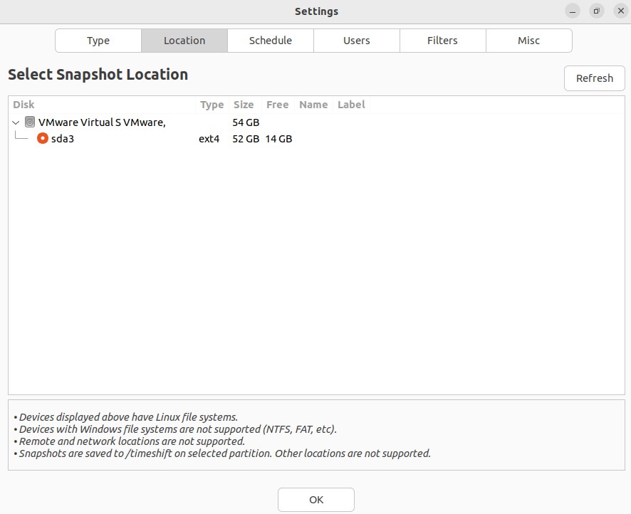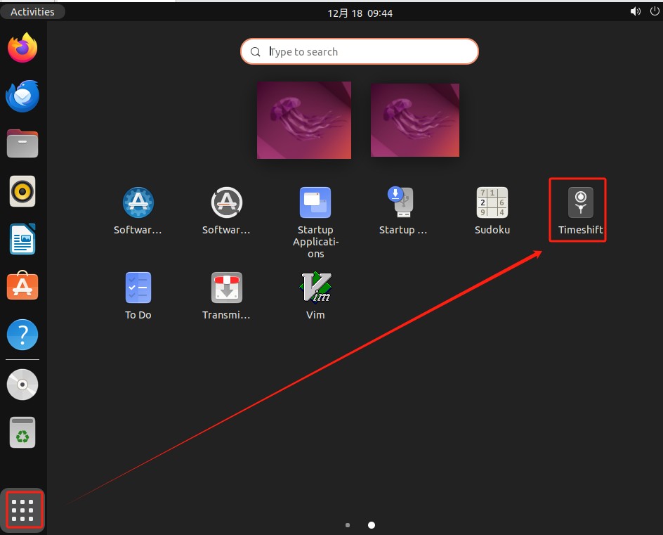 # ubuntu sudo apt update sudo apt install timeshift # centos sudo yum install timeshift