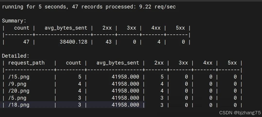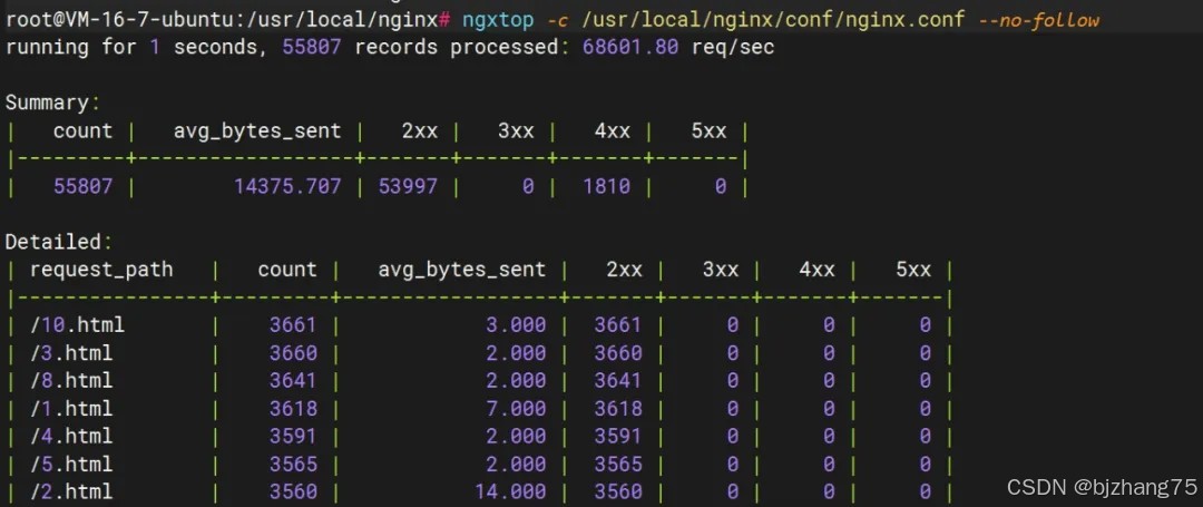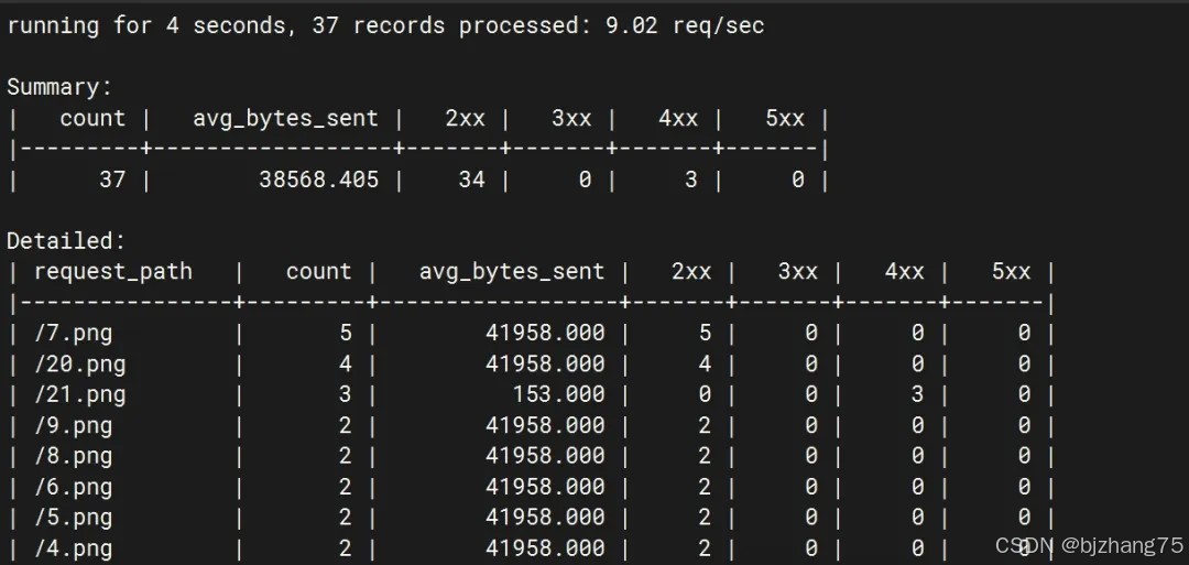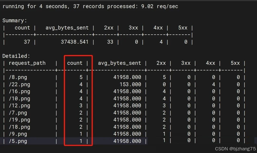 ngxtop是一个实时命令行工具,可以分析nginx访问日志,以表格形式将http请求的主要指标直观展示。ngxtop将nginx的访问请求数据实时动态展示,并支持按字段过滤请求。