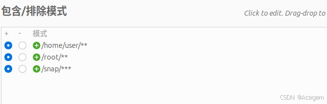 “筛选”那栏,可以通过添加目录把 /snap/*** 目录加上,否则会过滤掉了。如下图: