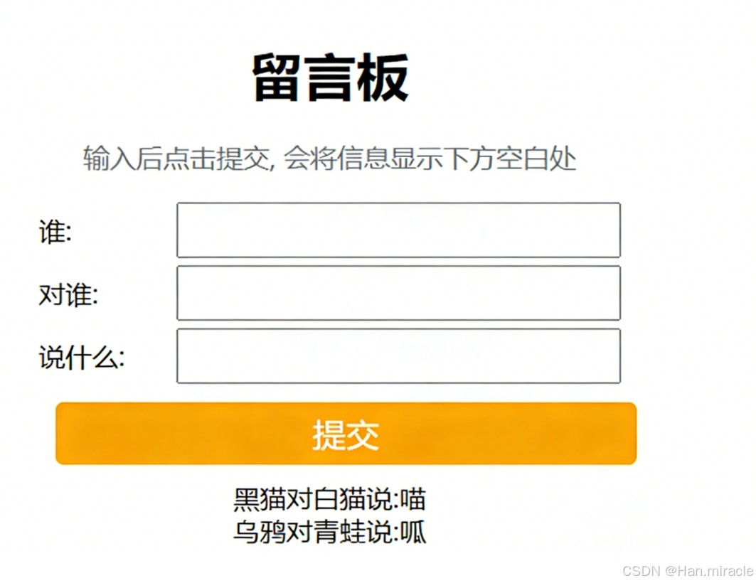- 输入留言信息,点击提交。后端把数据存储起来.