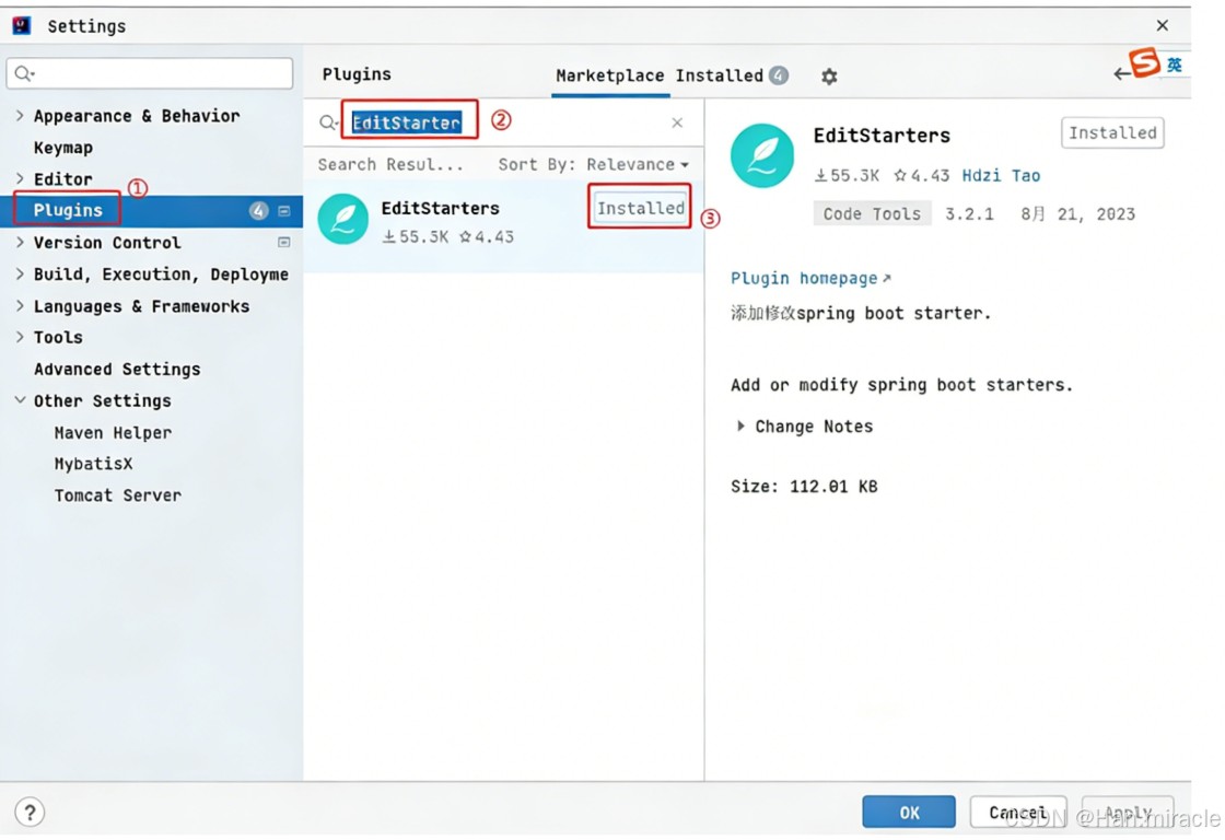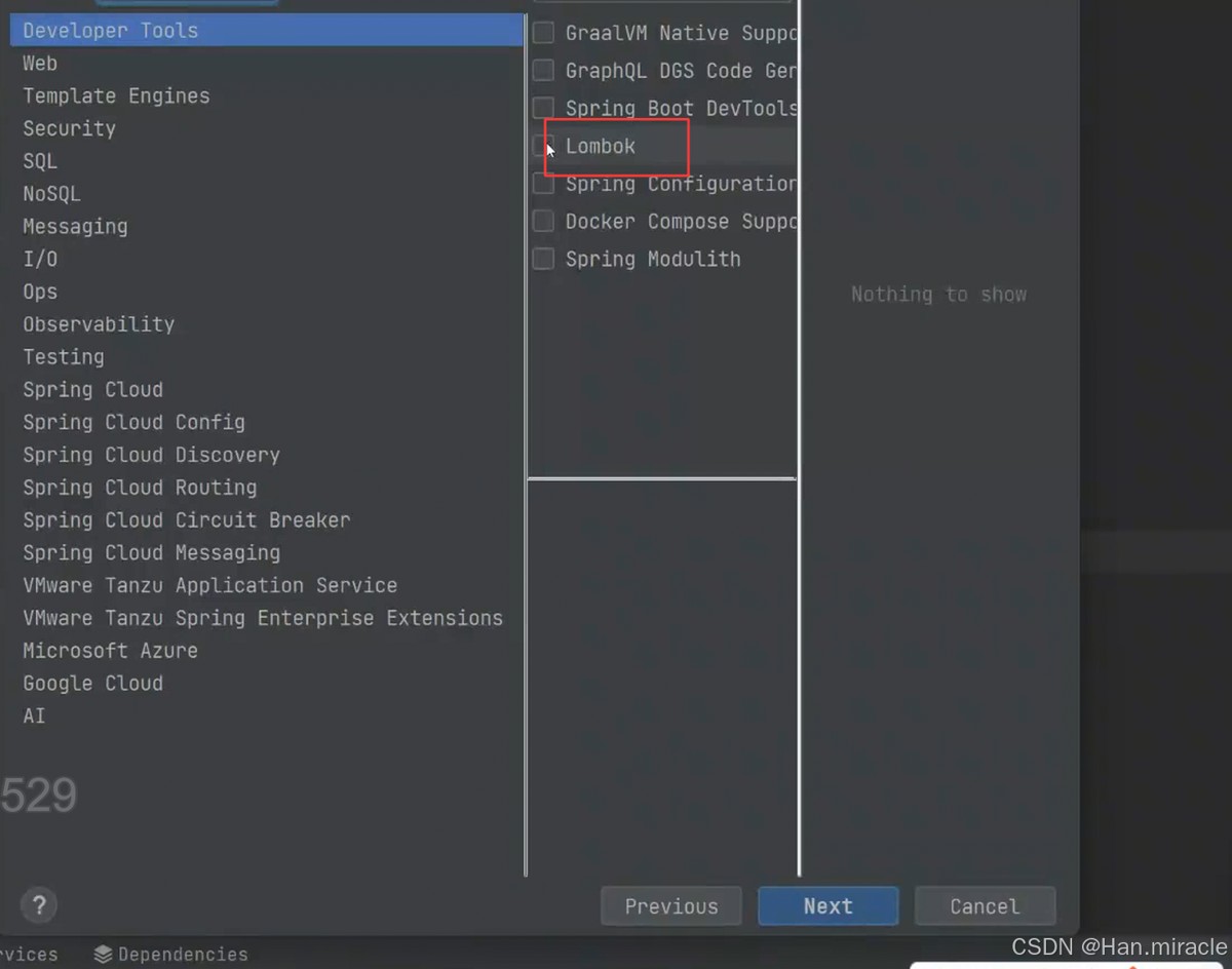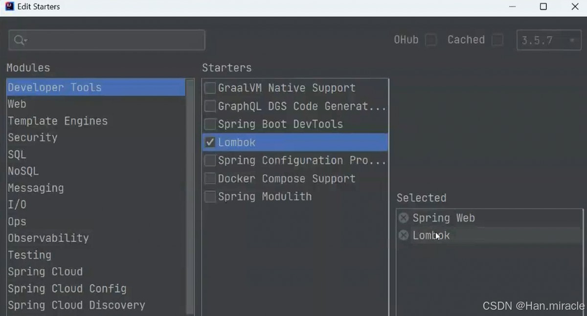 进⼊editstarters的编辑界⾯,添加对应依赖即可
