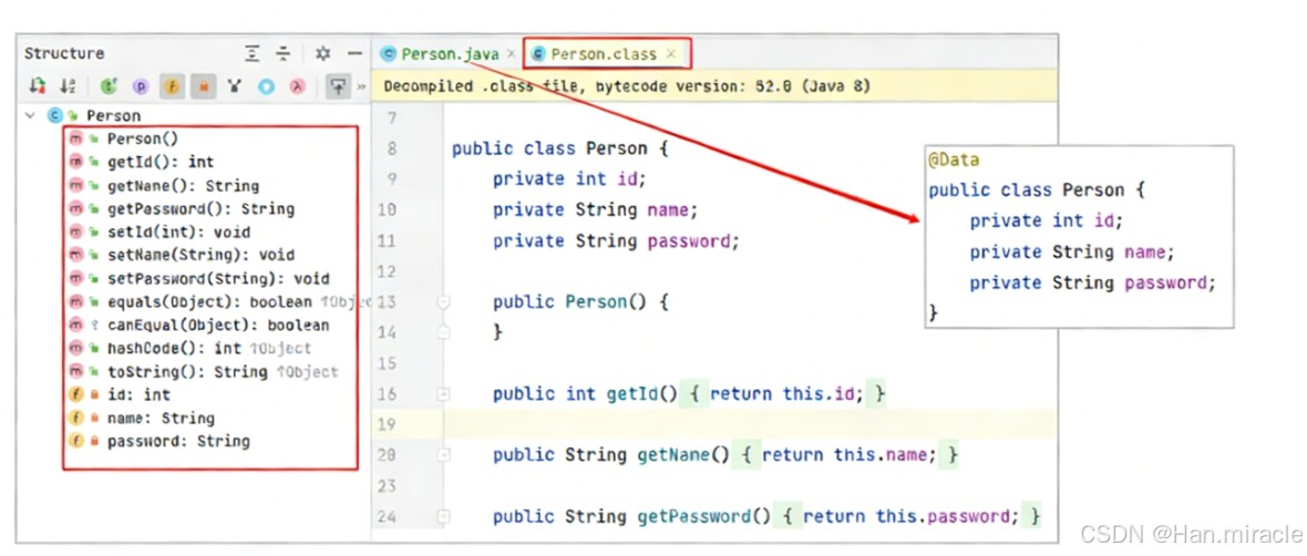 lombok 通过一些注解的方式,可以帮助我们消除一些冗长代码,使代码看起来简洁一些比如之前的 person 对象 就可以改为