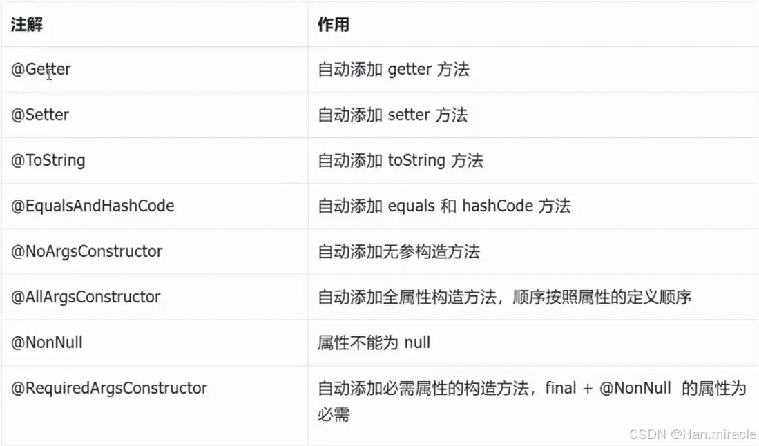如果觉得 @data 比较粗暴 (生成方法太多),lombok 也提供了一些更精细粒度的注解