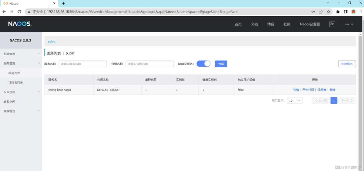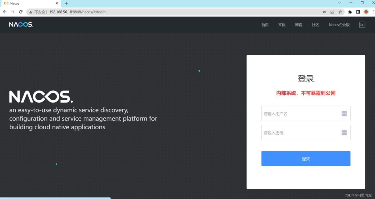 访问浏览器 ip:8848/nacos