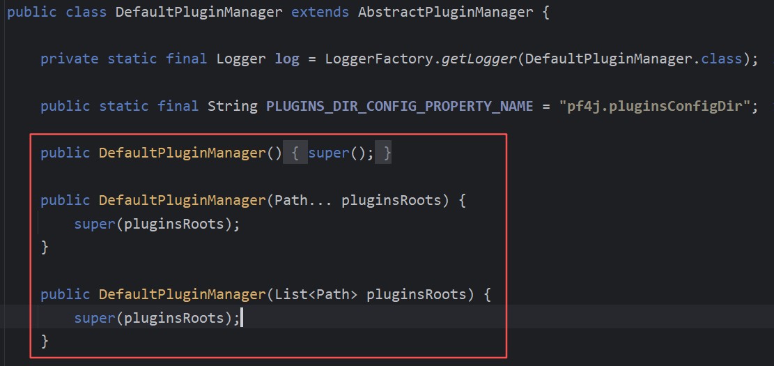 }当我们实现自定义继承pluginmanager时,若我们已指定插件目录路径则按照手动指定的插件目录解析并加载插件,否则从jvm系统属性获取pf4j.pluginsdir,若已指定则按照指定路径解析并加载插件,否则默认的插件目录则为plugins或者../plugins(pf4j区分测试和生产模式,也是从jvm系统属性获取mode_property_name)。