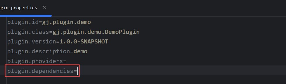 pf4j以逆拓扑排序解析插件依赖,插件依赖由约定的plugin.properties中的plugin.dependencies属性定义插件依赖,若依赖插件gj.plugin.demo2和gj.plugin.demo3(可选是否带上版本号),那么:plugin.dependencies=gj.plugin.demo2@1.0.0-snapshot,gj.plugin.demo2@1.0.0-snapshot。注意多个依赖用英文半角符号隔开,同时若出现循环依赖则会抛出异常,不用担心死循环问题