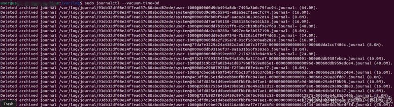 使用 journalctl 命令可以管理系统的日志。以下命令可以删除3天前的所有日志:
