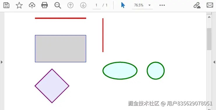 这段代码演示了如何使用不同的画笔和画刷绘制线条、矩形、椭圆和多边形,为pdf文档增添视觉元素。