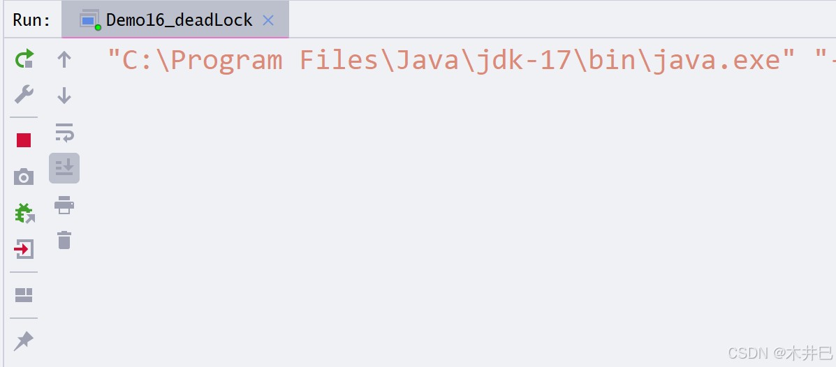 }运行该程序会发现什么也没输出,程序却还在运行。