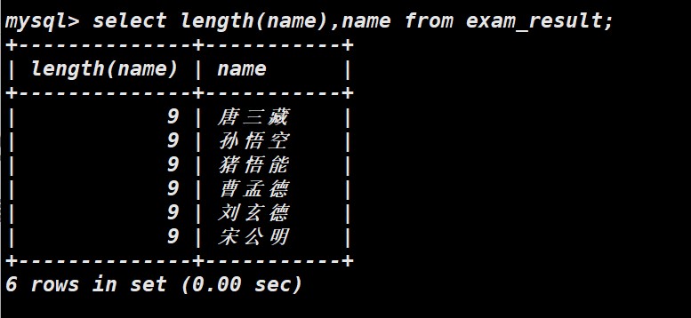 返回列的字符长度,其中中文占3个字符,其余的字母占1个字符