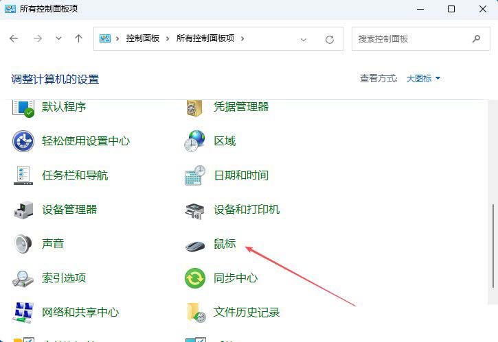 1、首先,打开win11系统的控制面板界面,设置“查看方式”为“大图标”。