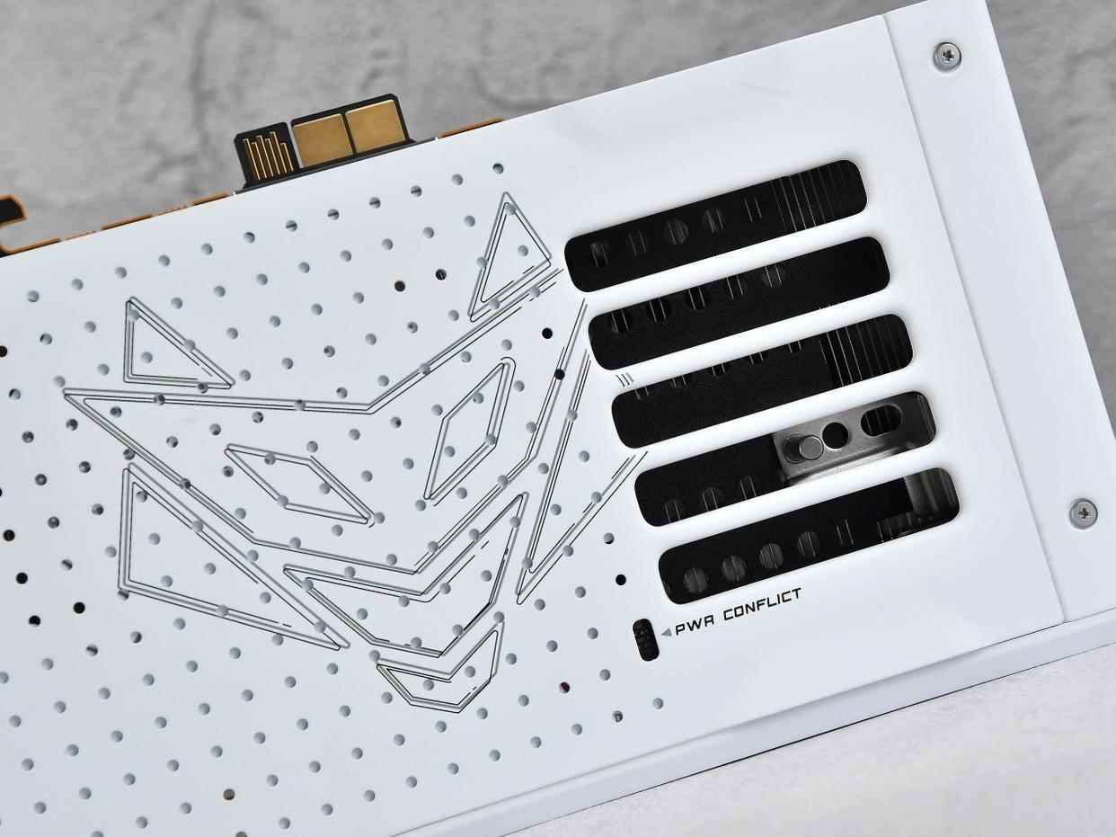 还有一个小细节是,这款显卡配备pwr conflict供电冲突指示灯,若两种供电方式同时连接,指示灯会亮起提醒,避免显卡因供电冲突无法正常工作。