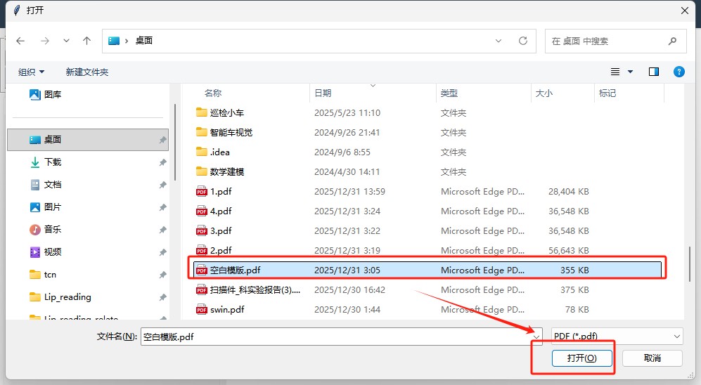 打开目标 pdf:选择需要填写的实验报告、作业等 pdf 文件;