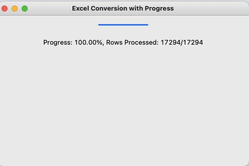 - 对于超大 excel 文件(数十万行),每行都刷新界面可能会略微影响性能。可改为每 10 行或 50 行更新一次。