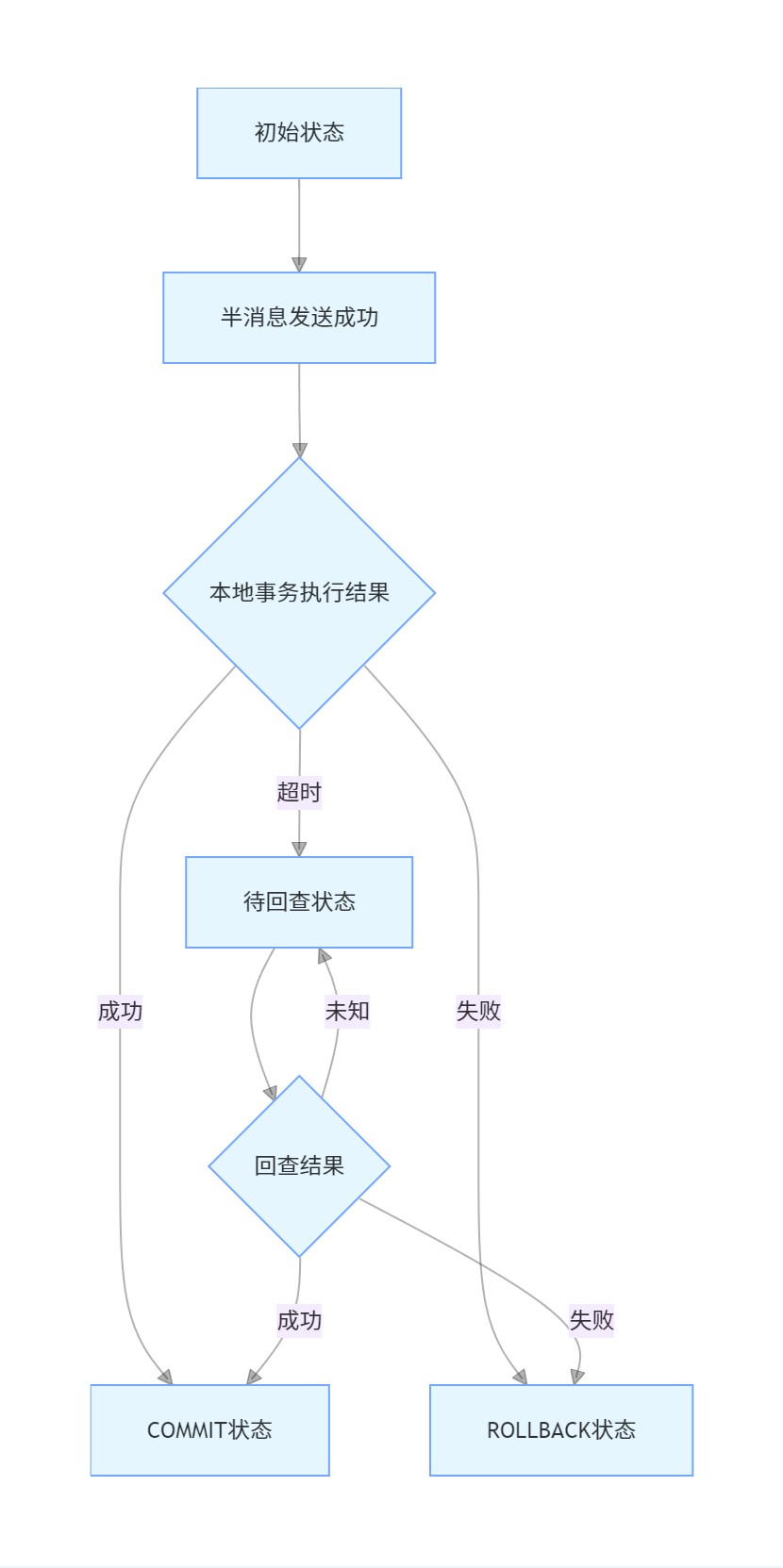 通过以上方案,可有效处理多个消息的不同状态回查,在保证最终一致性的同时,提升系统处理性能和稳定性。实际应用中需根据业务特性调整参数配置,并通过监控持续优化回查策略。