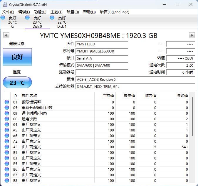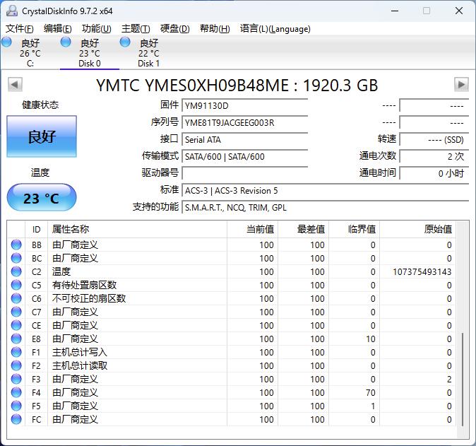 由于这次测试的是比较传统的sata iii接口ssd,所以就直接在windows系统下进行测试。sata ssd没有通用的smart定义,所以crystaldiskinfo识别不出其中很多项目也并不奇怪。