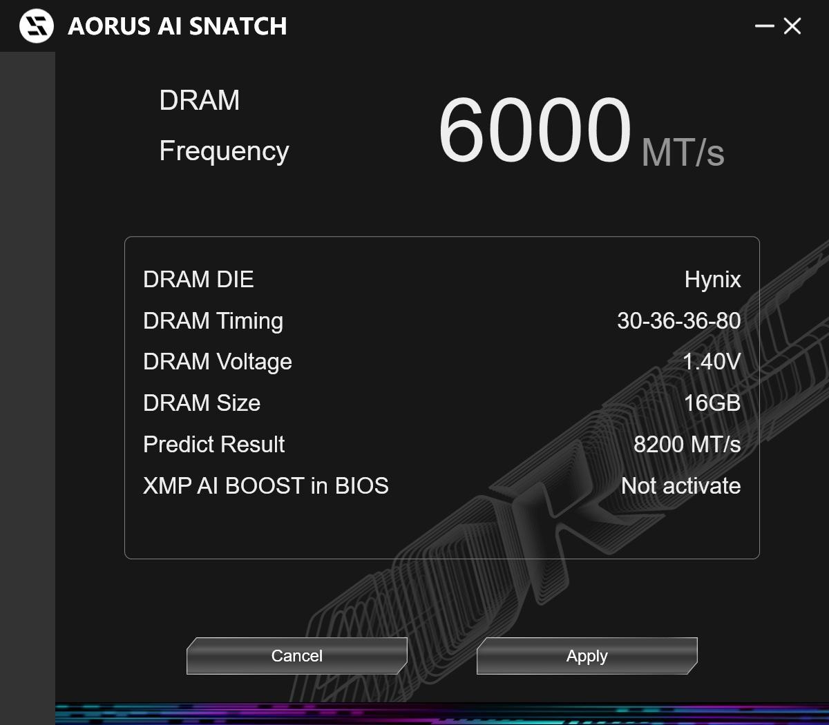 我们还测试了d5黑科技的2.0版本,结合ai snatch对内存进行超频。这个软件在技嘉的gcc控制中心里下载,安装好后就可以开启。