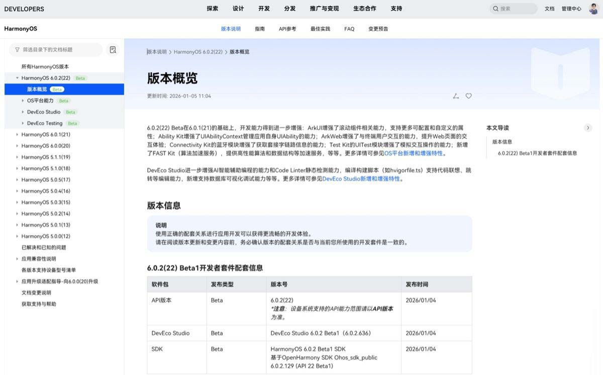 据此前报道,华为开发者官网昨日还公布了鸿蒙 harmonyos 6.0.2 的文档,带来鸿蒙 api 22 beta 版本。6.0.2 (22) beta 在 6.0.1 (21) 的基础上,开发能力得到进一步增强: