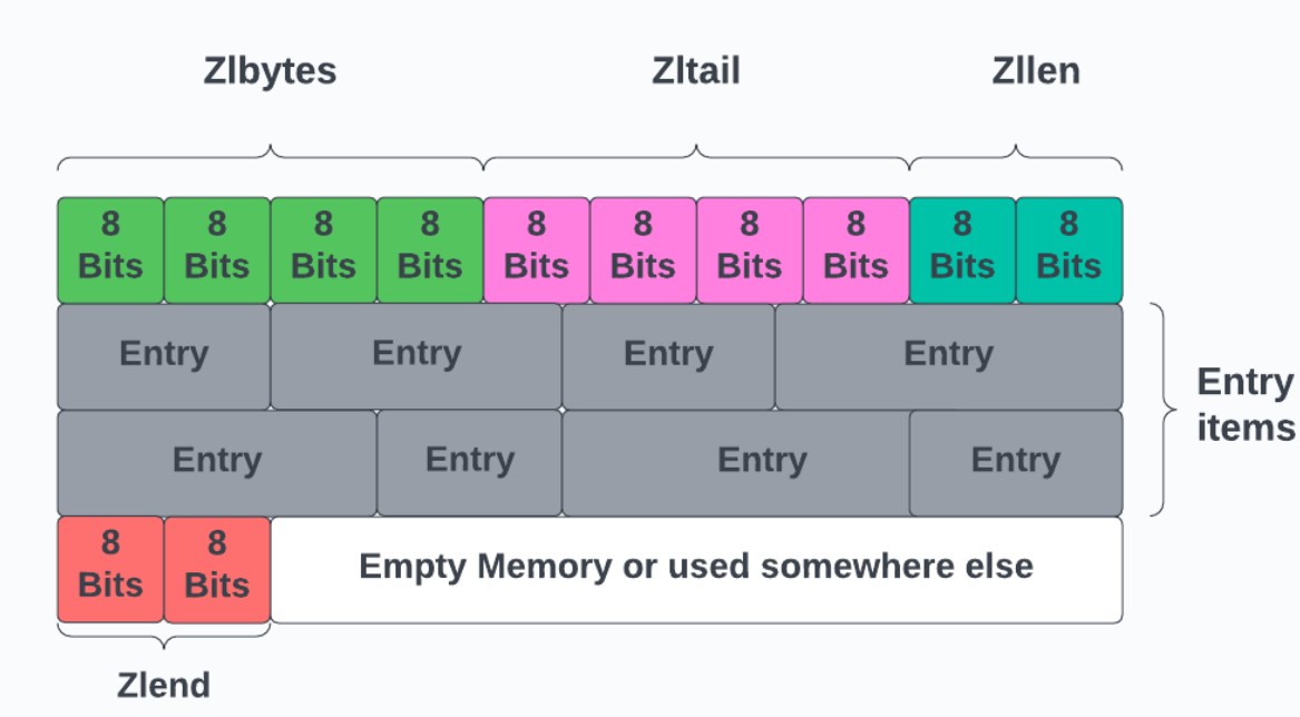 - 内存利用率高 — 非常节省内存空间,适合存储少量、小数据。