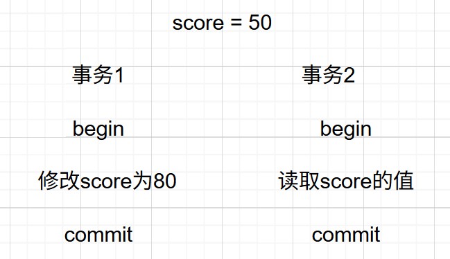 - 此时如果事务1没有执行完,事务2读到的数据就是修改前的数据。