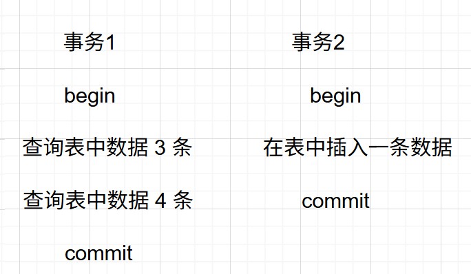 在执行事务1中第一次查询时,有3条数据,再执行事务2,在执行事务1的第二条查询,有4条数据,这就是幻读问题。
